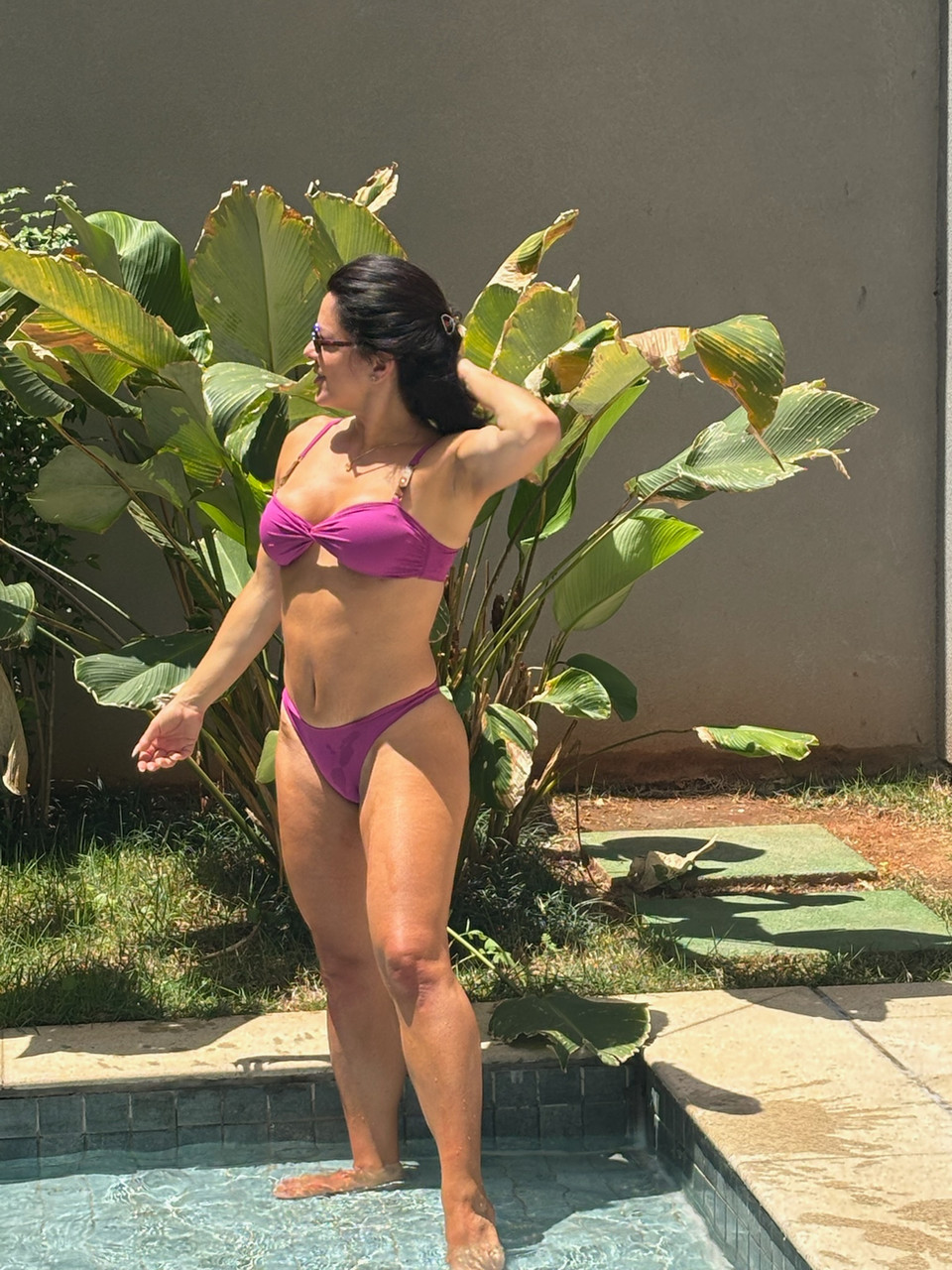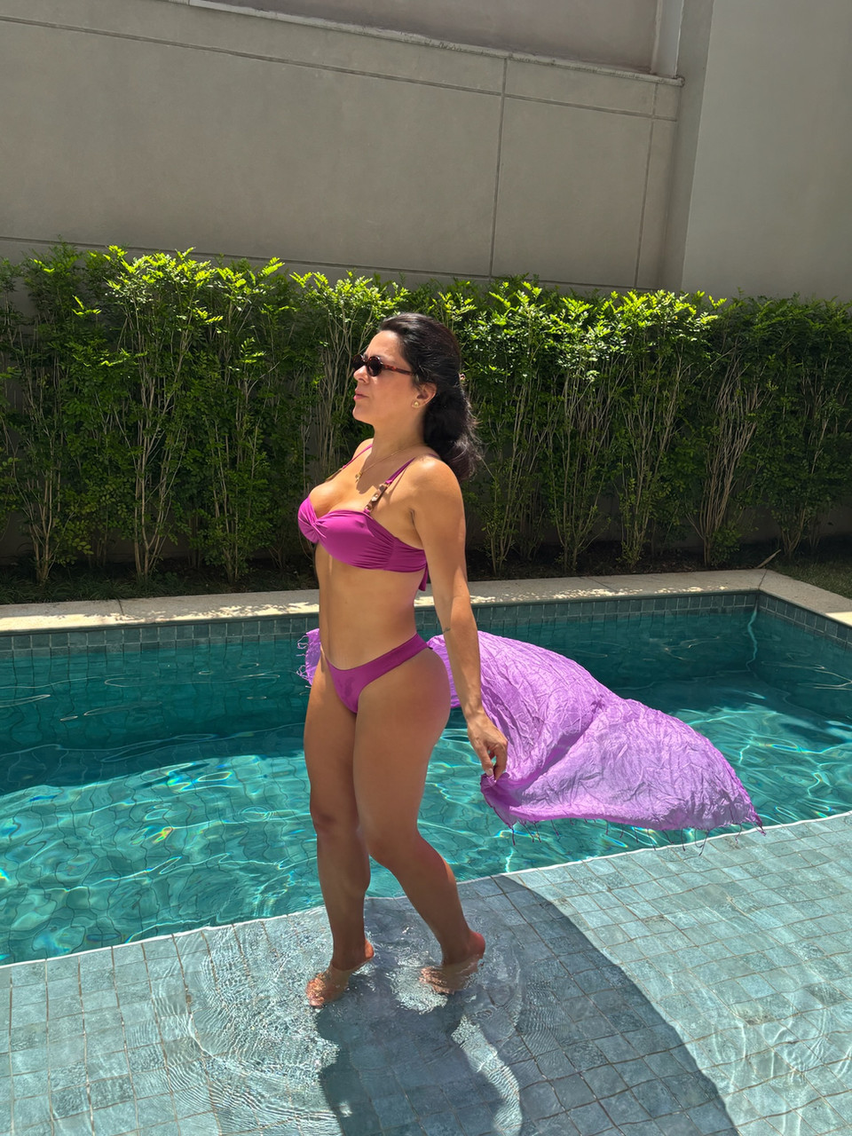 O Biquíni Íris traz um visual marcante com detalhes que fazem a diferença. Confeccionado em poliamida, possui bojo removível e alças com regulagem, garantindo conforto e ajuste ideal ao corpo.